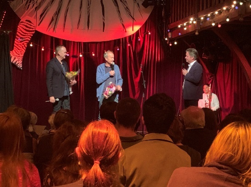 La soirée du 16 octobre, organisée par la production Les Livreurs nous a permis de (re)découvrir cette histoire. L’évènement était prévu avant que le dernier roman d’Hervé Le Tellier ne reçoive le Prix Goncourt, mais il a été repoussé à de nombreuses reprises par le confinement. Ce soir, l’équipe est donc un peu nerveuse mais heureuse de se retrouver après cette longue période d’inactivité.